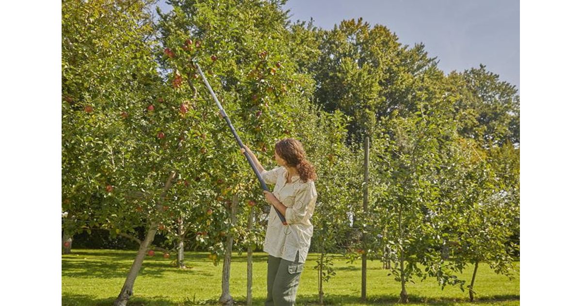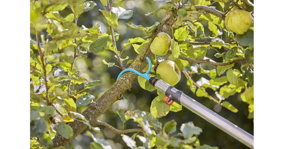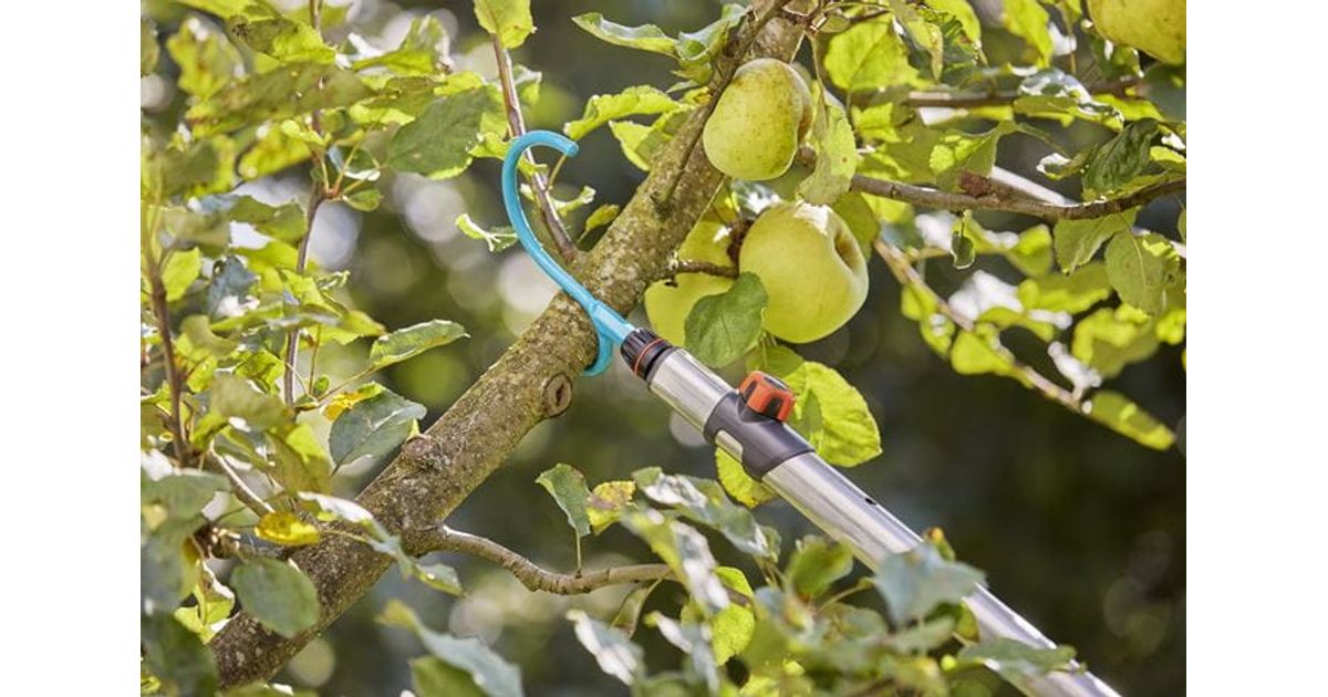 The GARDENA combisystem Branch Hook is the ideal helper to shake fruits out of the tree. The GARDENA combisystem allows for flexible use, thanks to the exchangeable attachments. The Branch Hook is compatible with all handles of the GARDENA combisystem and can be mounted and secured with the handle. If used in combination with the GARDENA combisystem Telescopic Handle (Art. No. 3721-20), you can easily reach farther branches or high-hanging fruits like apples easily. The secure connection between Branch Hook and handle ensures that you can always work comfortably. Thanks to the s-form of the hook, you can use the Branch Hook to support branches or to shake them. The hook is ideal for harvesting fallen fruit. Furthermore, the Branch Hook can be used to remove cut branches from trees and clear the branches from snow in the winter. For space-saving storage, you can use the combisystem Tool Rack Flex (Art. No. 3505-20). The combisystem Branch Hook is supported with 25 years of warranty by GARDENA. Let your tool family grow. GARDENA combisystem. Interchangeable. Durable. For any gardening task.
