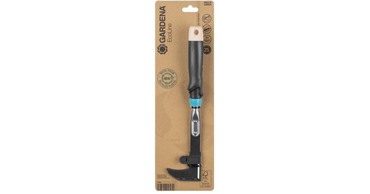 Effortless and sustainable - cleaning gaps in the driveway or on the terrace is fast and easy thanks to GARDENA's EcoLine patio weeder. The patio weeder is ideal for removing moss and weeds between narrow slab gaps, at wall edges, in driveways or between paving stones around the house. In no time at all, you'll have a neat and weed-free space. The plastic used consists of more than 85 percent recycled material, especially household waste. The stainless steel blade of the tool is ground on both sides and made of more than 45 percent recycled material. Weeds and moss can be precisely removed from all gaps and crevices. The handle end of the patio weeder has an elegant, waxed FSC® 100%-certified wood grip, which makes your new garden helper look particularly stylish and natural. The material is not only sustainable, but also makes your weeding tool robust and durable. Scraping out weeds is particularly comfortable because of the ergonomically shaped handle. The EcoLine Patio Weeder is Made in Europe and is backed by a 25-year manufacturer's warranty from GARDENA. A natural choice for passionate gardeners. ReTh!nk - The new EcoLine range. Sustainably made. Aesthetically designed. Durably built.