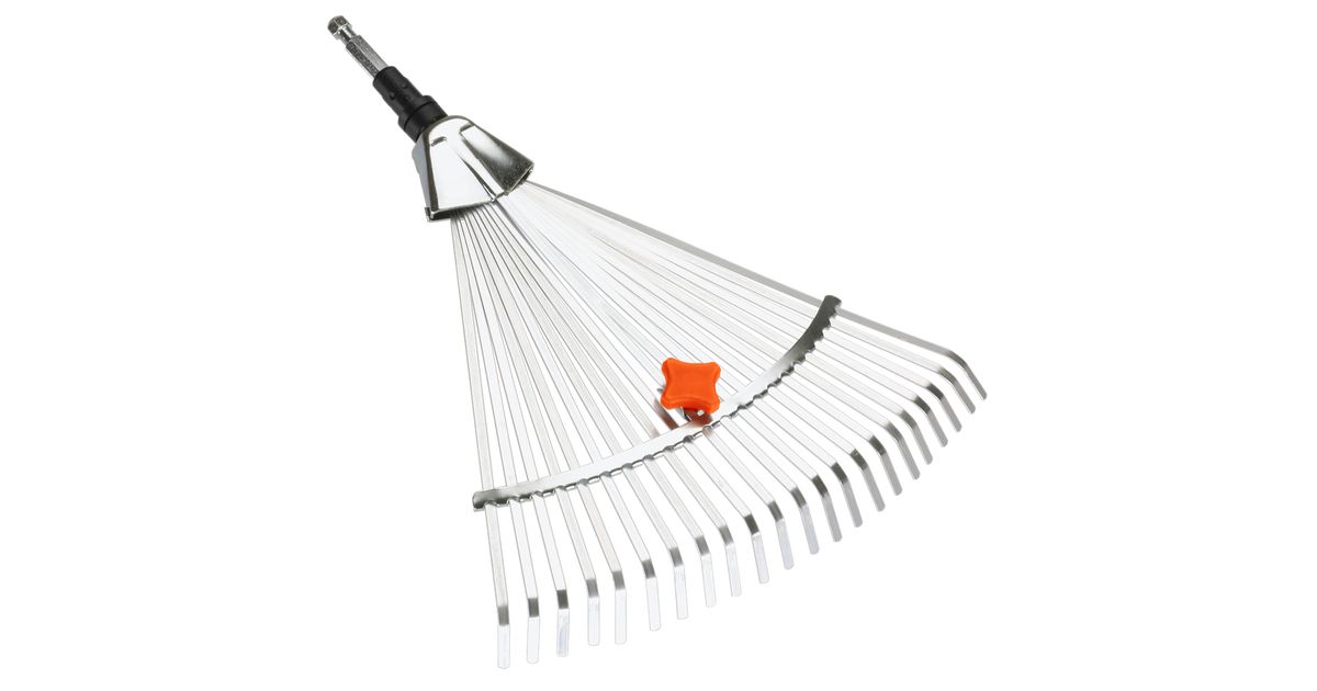 The GARDENA combisystem Adjustable Rake is ideally suited for raking leaves, grass clippings and other garden debris. The width between the flexible and zinc-plated spring-steel prongs can be easily adjusted. With a working width of 30 to 50 cm, coarse or fine material can be raked. The Adjustable Rake is suitable for all GARDENA combisystem handles, whereby GARDENA recommends a handle length of 130 cm, depending on body height.