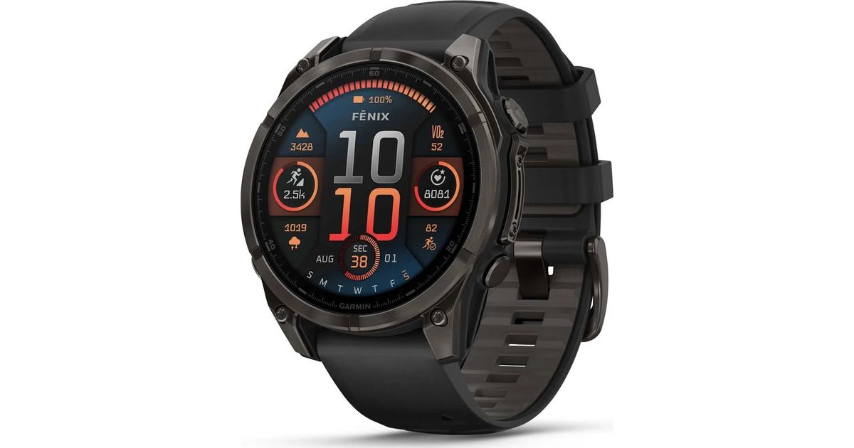 Garmin Fenix 8 47 mm AMOLED Sapphire Carbon Gray DLC Titanium sports watch with black and gray strap [010-02904-21]