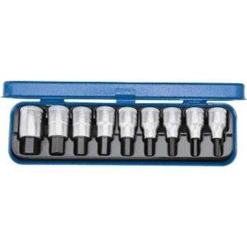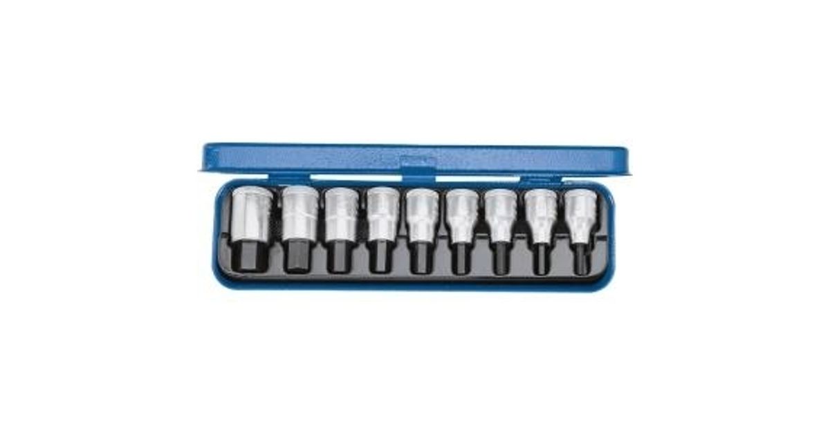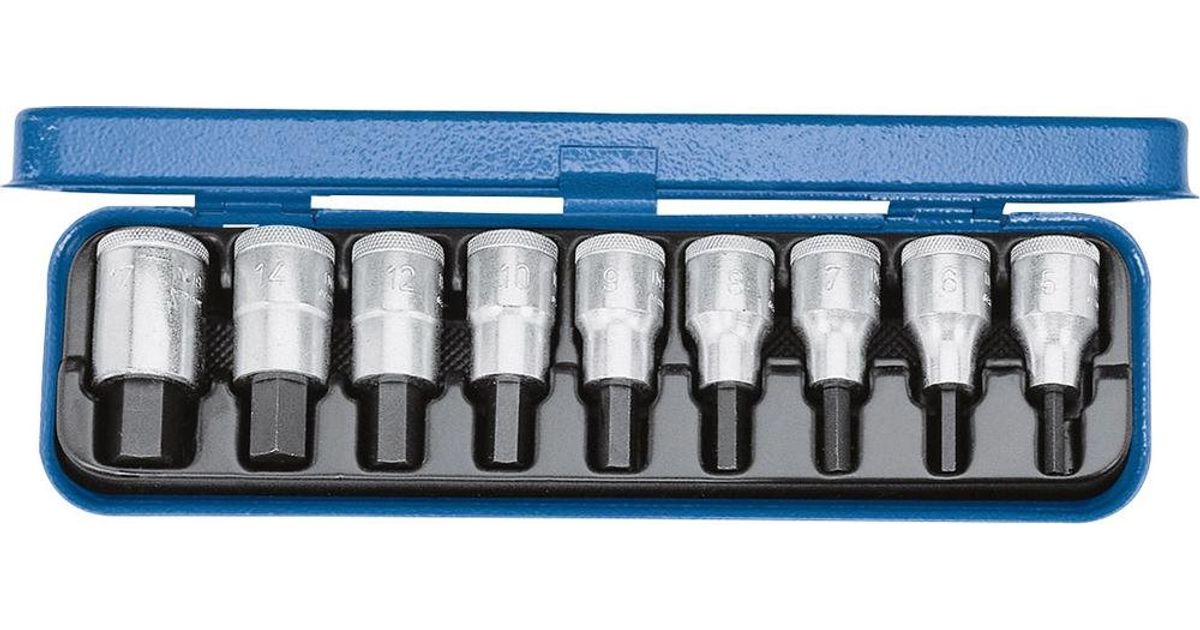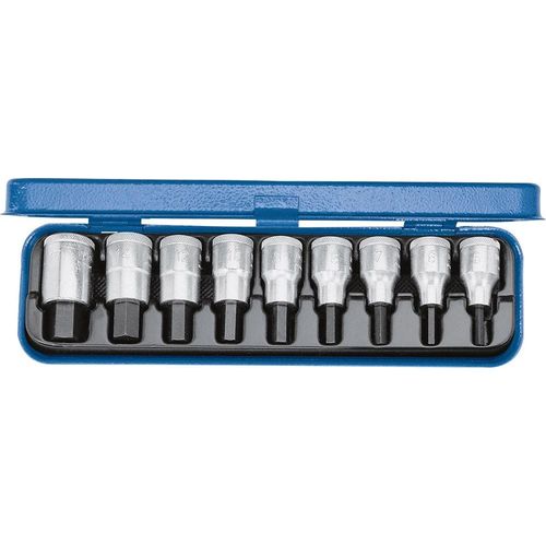 For in-hex screws. In Gedore blue sheet steel case. Dimensions: 281 x 79 x 35 mm.