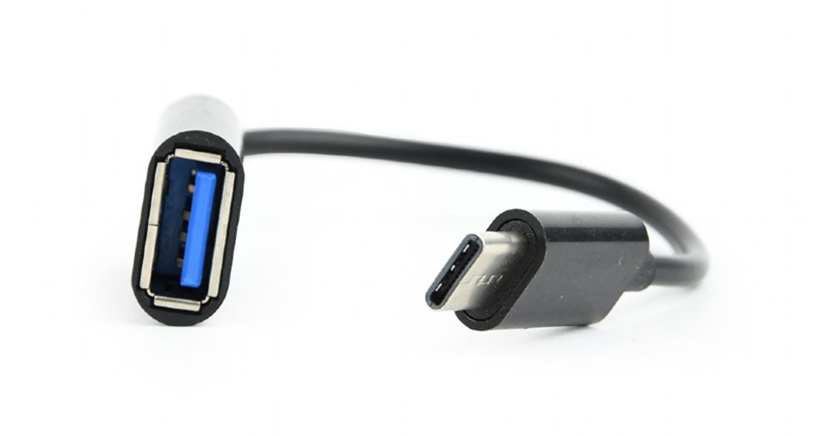 USB 2.0 OTG type-C (male) to type-A (female) adapter plug.