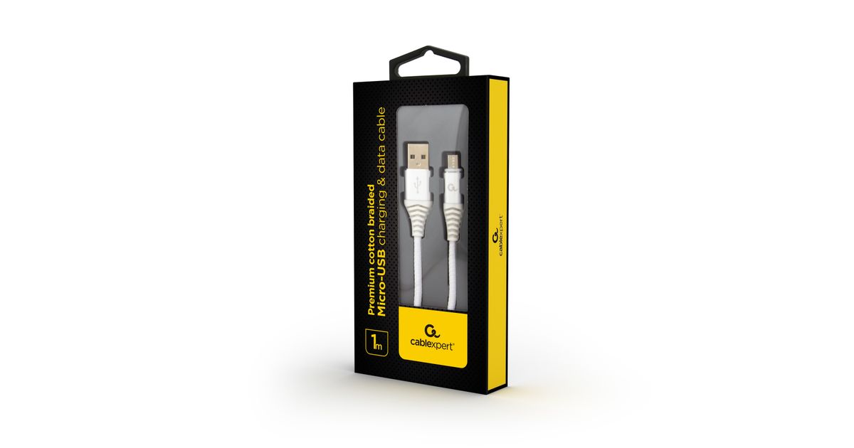 Gembird CC-USB2B-AMMBM-1M-BW2, 1 m, Micro-USB B, USB A, USB 2.0, 480 Mbit/s, Silver, White