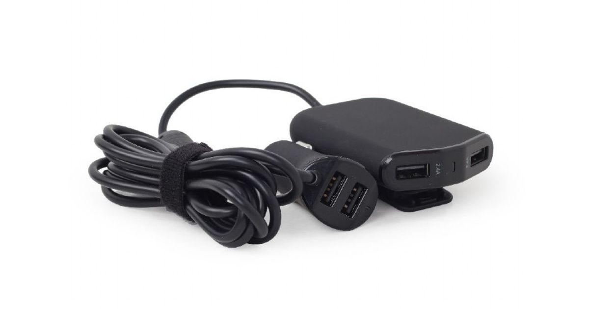 Gembird EG-4U-CAR-01, Auto, Cigar lighter, USB, 1.8 m, Black