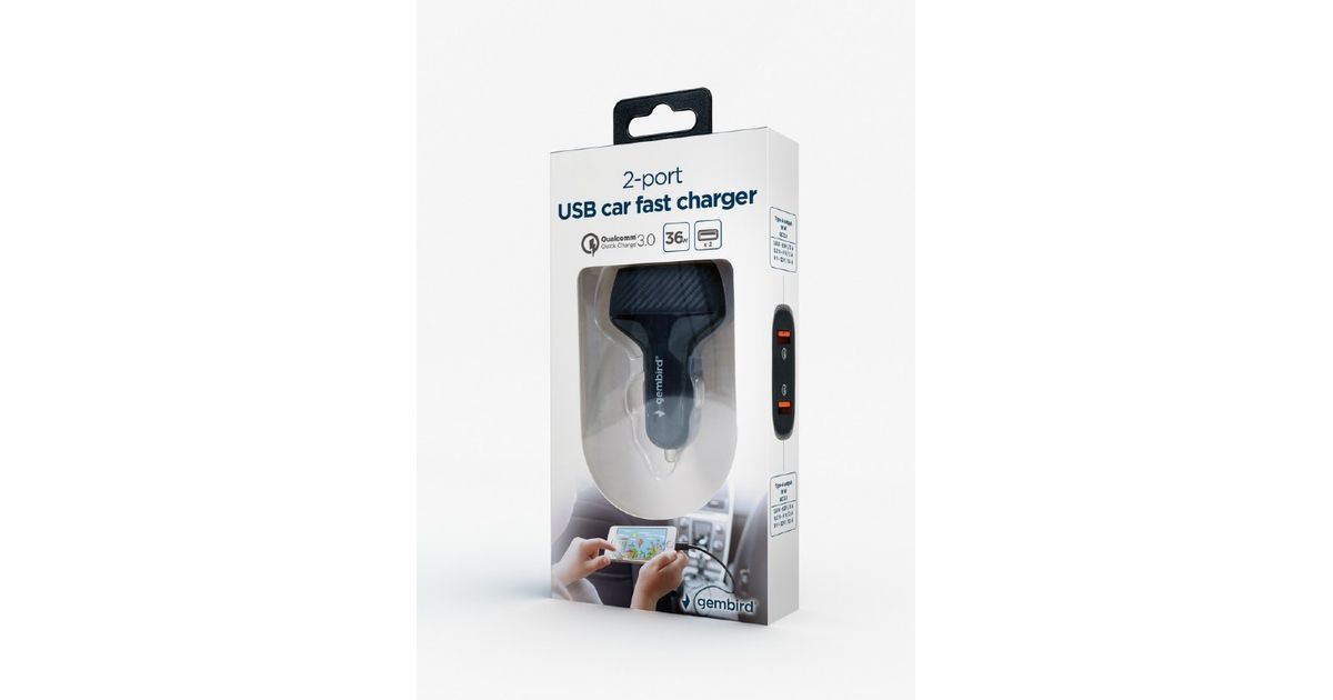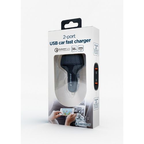 Gembird TA-U2QC3-CAR-01, Auto, Cigar lighter, Black