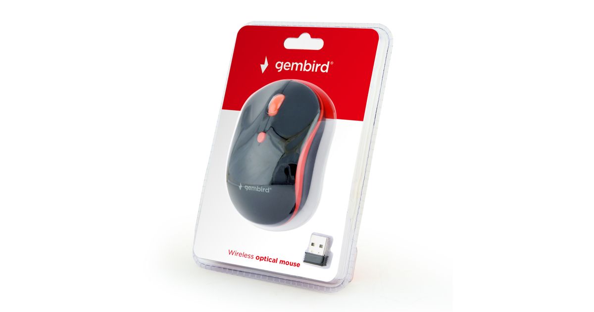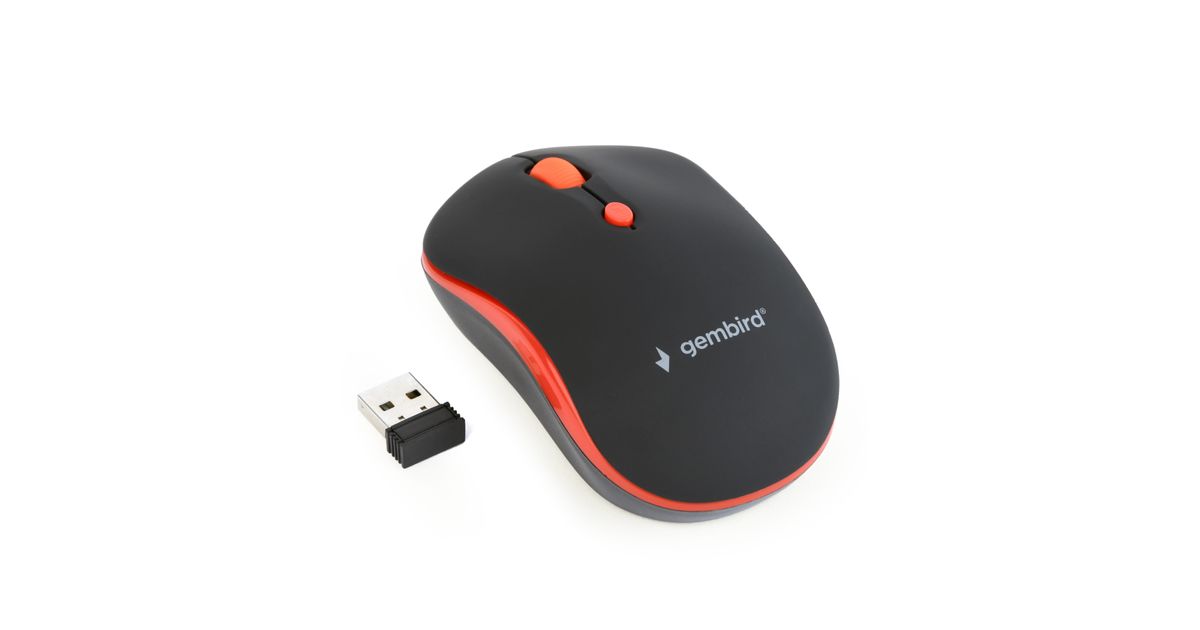 Gembird WIRELESS OPTICAL MOUSE MUSW-4B-03-R 1600DP - Maus, Ambidextrous, Optical, RF Wireless, 1600 DPI, Black, Red
