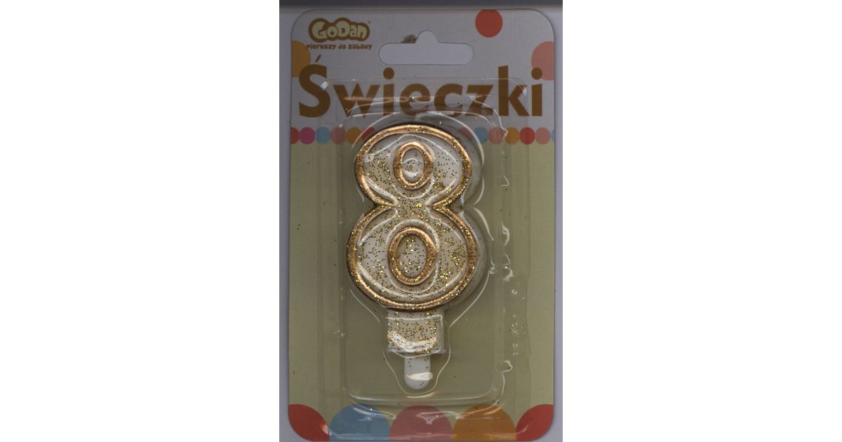 GoDan Number candle with a gold rim and glitter - 8 - 1 pc. Universal