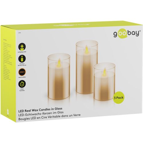 Goobay Set of 3 LED Real Wax Candles in Glass, 0.03 W, LED, 1 bulb(s), 10000 h, Warm white, 2700 K
