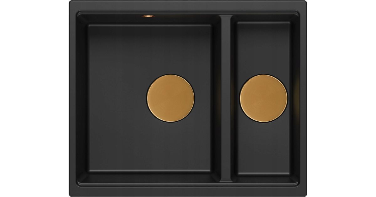 GraniteQ QUADRON sink | LOGAN 150 | granite kitchen sink BLACK matt + COPPER PVD | dimensions: 56 x 46 x 22 cm | 1.5-chamber suspended | cabinet base from: 60 cm