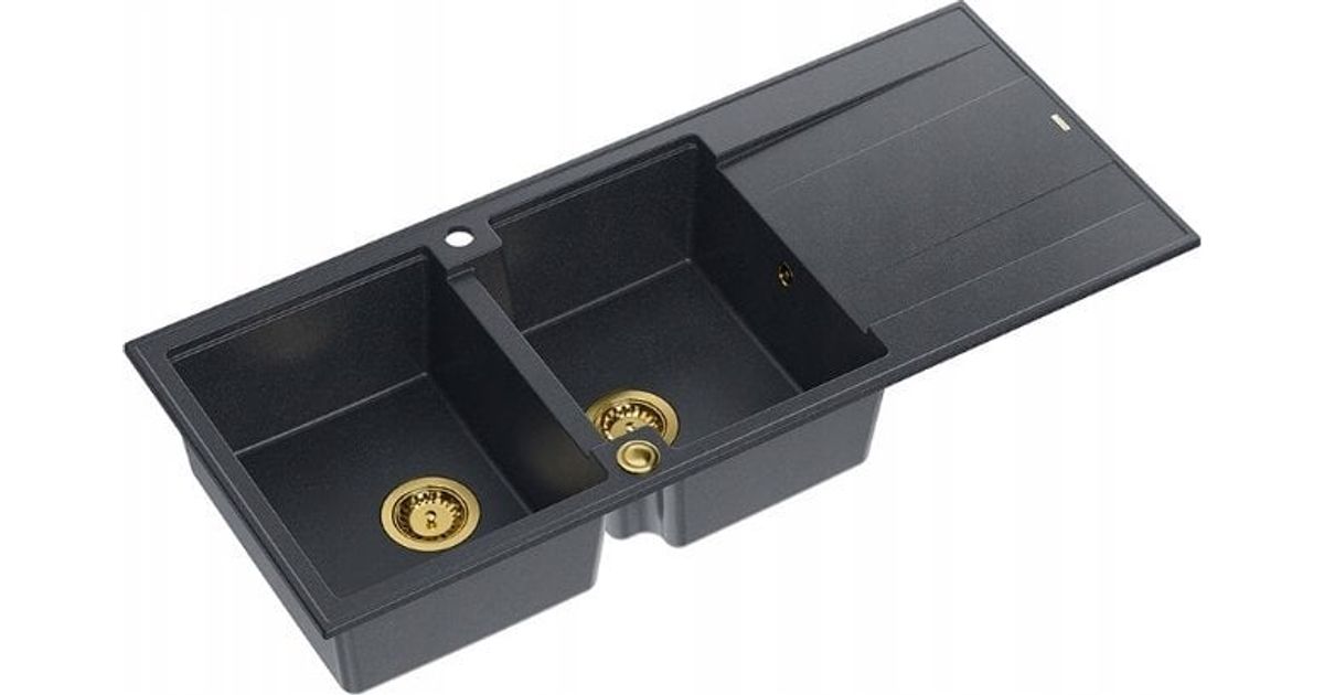 GraniteQ sink EVAN 121 GraniteQ sink with siphon Push To Open 2-bowl w/o (1160x500x210; cell. 420x340) black diamond / gold elements - Sinks - Kitchen and Dining room - Furniture - Home - MT Shop