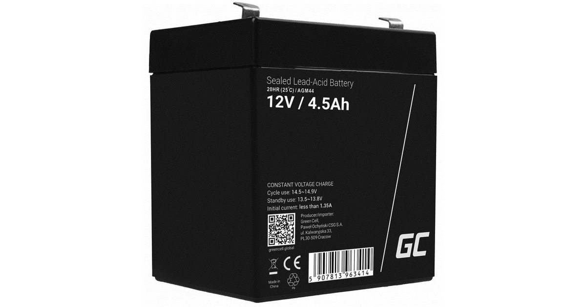 Green Cell AGM44, Sealed Lead Acid (VRLA), 12 V, 1 pc(s), Black, 4.5 Ah, 1.35 kg