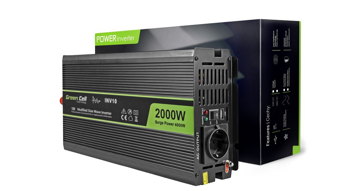Green Cell INV10, Universal, Auto, 12 V, 2000 W, 230 V, DC-to-AC