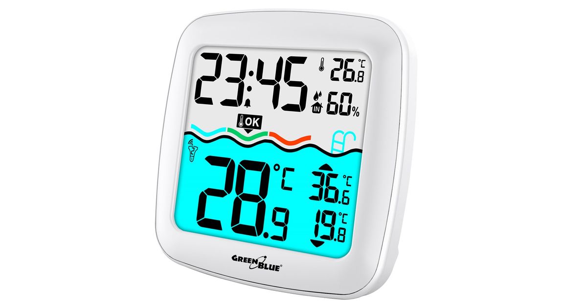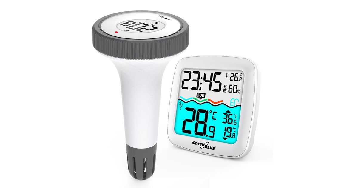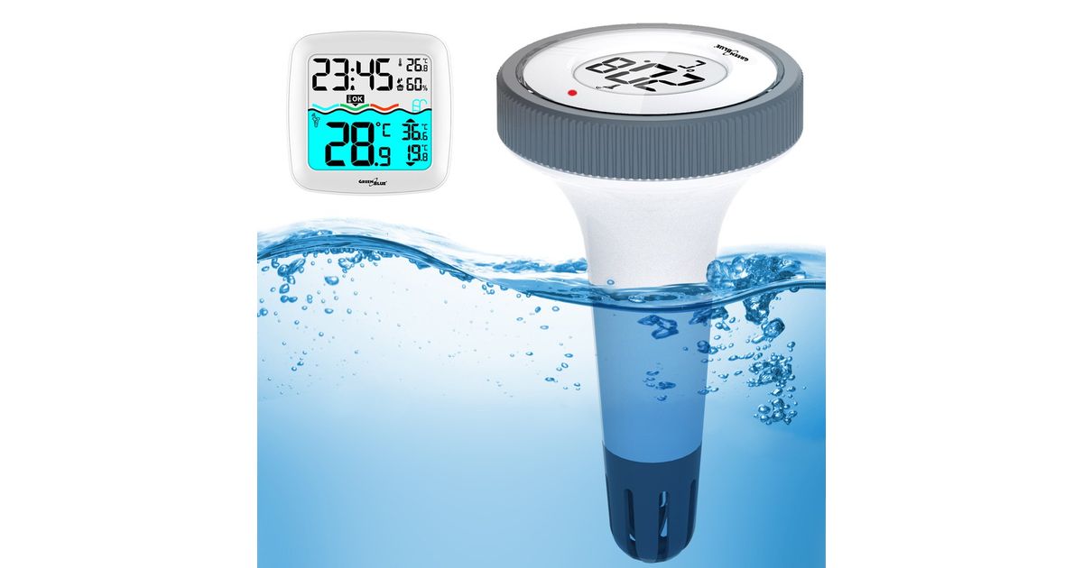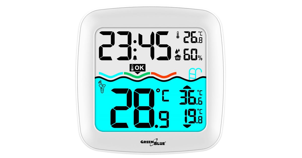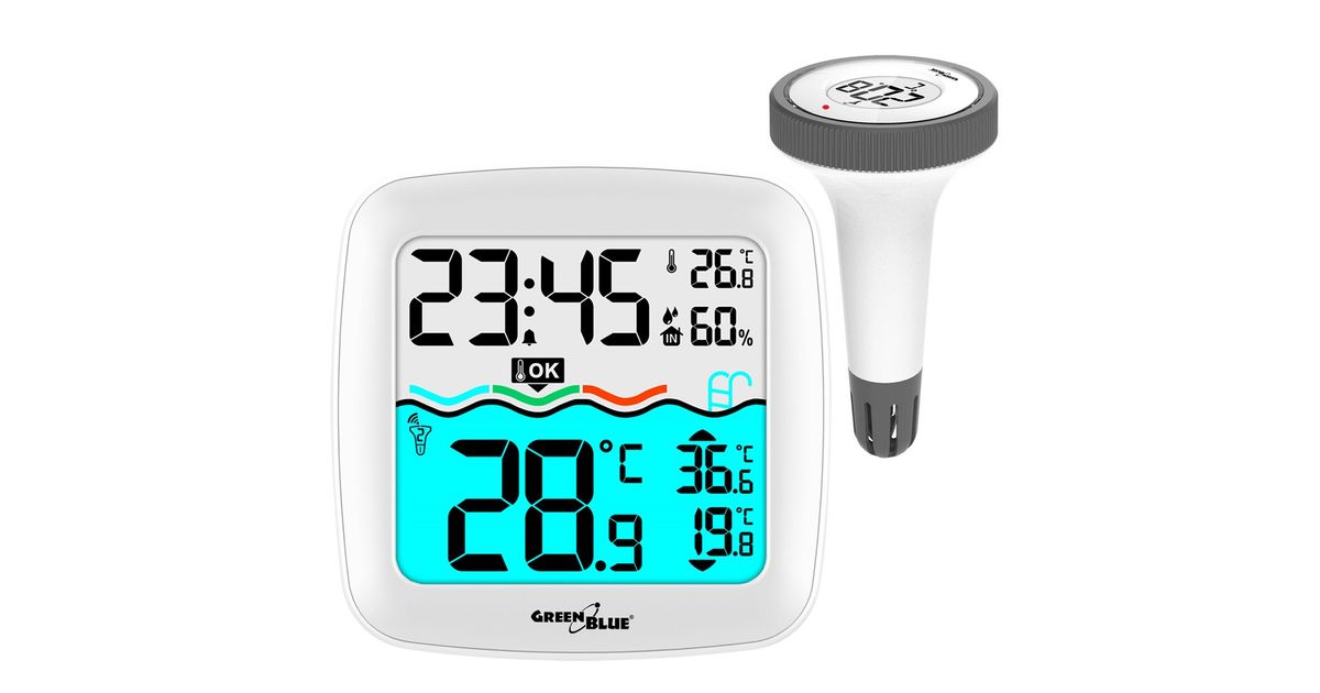 GreenBlue Weather station GreenBlue GB216 with pool thermometer, range 60m, floating sensor, temperature, time, calendar, DCF