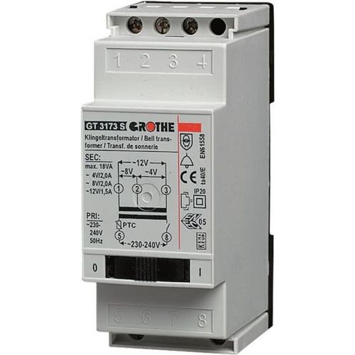 Grothe Klingeltransformator GT 3173 S 4-12V 2/1.5A mit Netzschalter (14083)