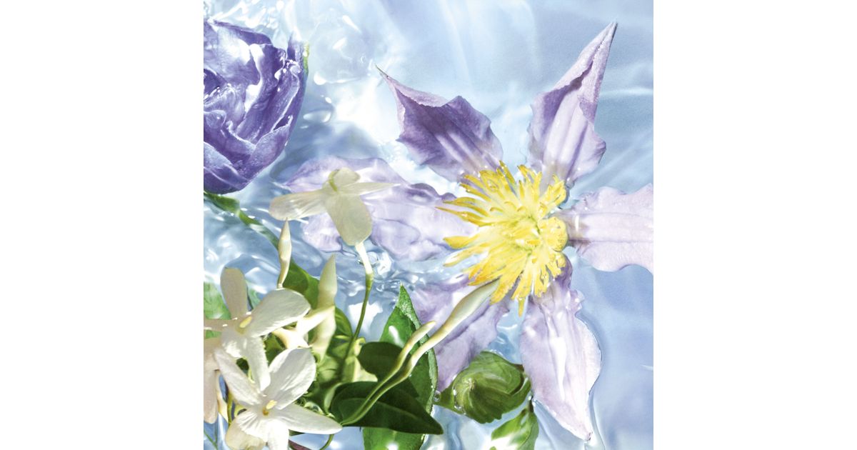 A revitalising watermelon note refreshes a wildflower accord, whose poetry is tinged with powdery iris and violet facets and illuminated by an armful of white flowers.