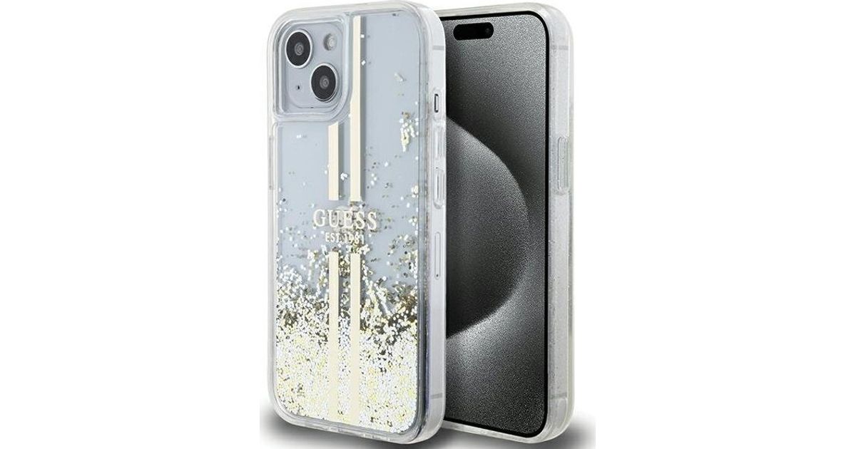Guess Guess GUHCP15MLFCSEGT iPhone 15 Plus / 14 Plus 6.7" transparent hardcase Liquid Glitter Gold Stripes