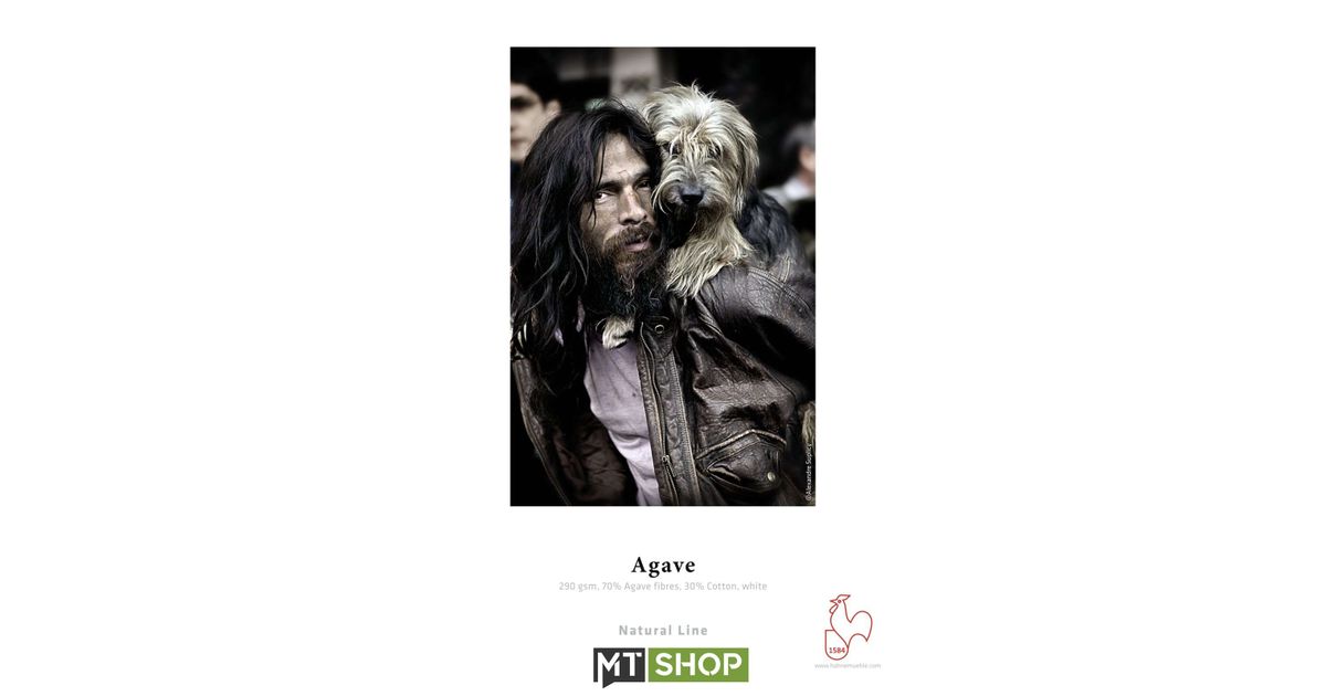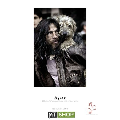 Hahnemühle Agave complements the Natural Line with a FineArt inkjet paper made from Agave fibres. The so-called sisal fibres form with 70% the basic structure of this special, environmentally conscious FineArt inkjet paper. The base material impresses with its bright white natural tone and is free of optical brighteners. The coarse, yet gently pronounced surface texture gives the motif a wonderful depth effect and convinces with a pleasantly soft feel. The matt premium inkjet Coating provides impressive printing results with excellent colour and detail reproduction, deep black and best contrasts. Hahnemühle Agave is acid- and lignin-free and meets the highest requirements for aging resistance. The interplay of special fibre raw materials, bright white natural colour, balanced surface structure and the usual high print quality results in an exclusive FineArt inkjet paper that can be used for many purposes.