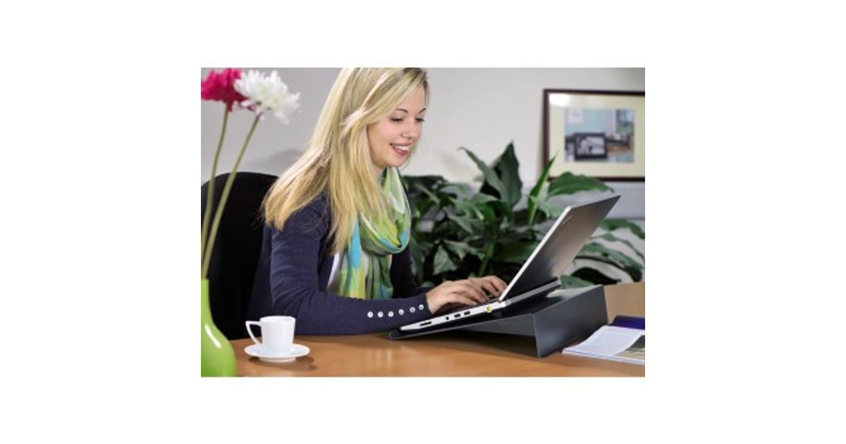 - Ensures comfortable working conditions when a notebook is used on a table or at a workplace.