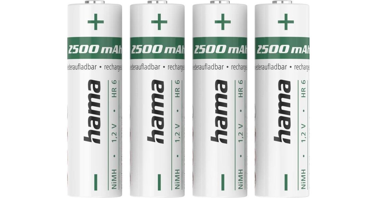 Hama 00223531, Rechargeable battery, AA, Nickel-Metal Hydride (NiMH), 1.2 V, 4 pc(s), 2500 mAh