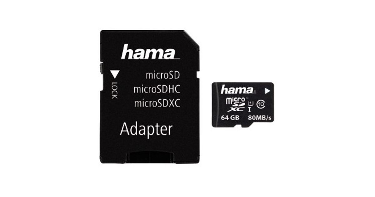 Hama microSDXC 64GB, 64 GB, MicroSDXC, Class 10, UHS-I, 80 MB/s, Black