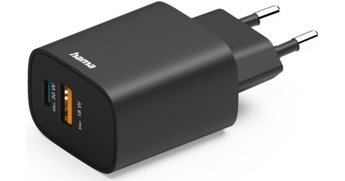 Hama Schnellladegerät, 1x USB-A, 1x USB-C, PD, 30 W, Schwarz (00201960)
