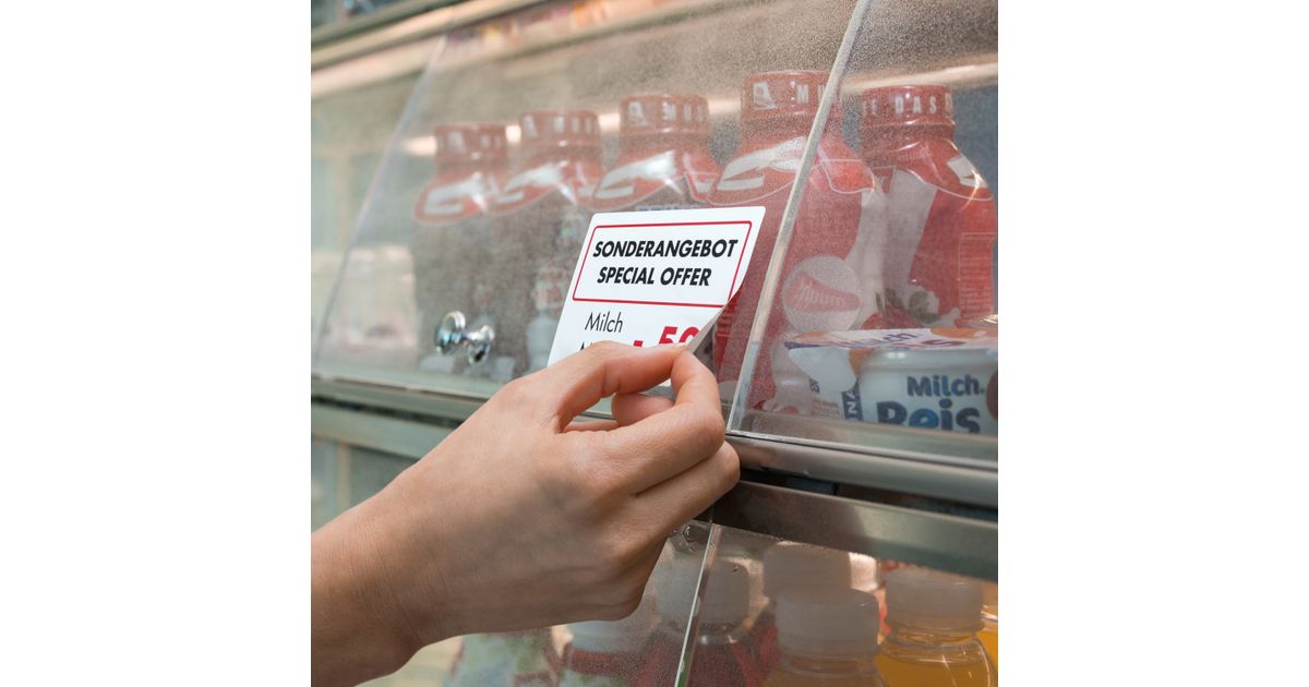 - Ideal for temporary labelling and conditions where labels are subject to high stresses as well as outdoors: identification labels, adhesive signs for display windows, information and warning signs, identification of items in storage and production facilities
