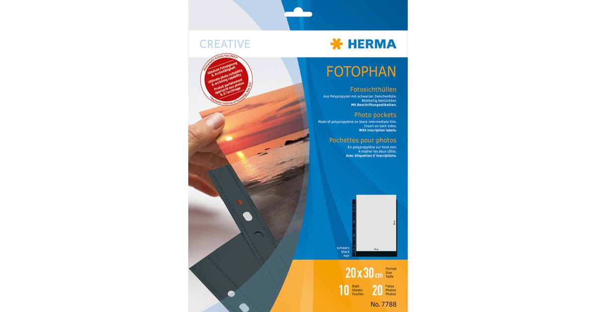HERMA Fotophan transparent photo pockets 20x30 cm portrait black 10 pcs., Black, Transparent, Portrait, 230 mm, 310 mm, 10 pc(s)