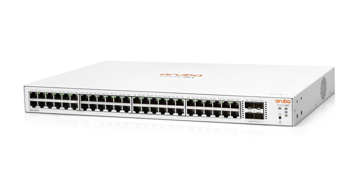 Hewlett Packard Enterprise Aruba Instant On 1830 48G 4SFP, Managed, L2, Gigabit Ethernet (10/100/1000), Full duplex, Rack mounting, 1U