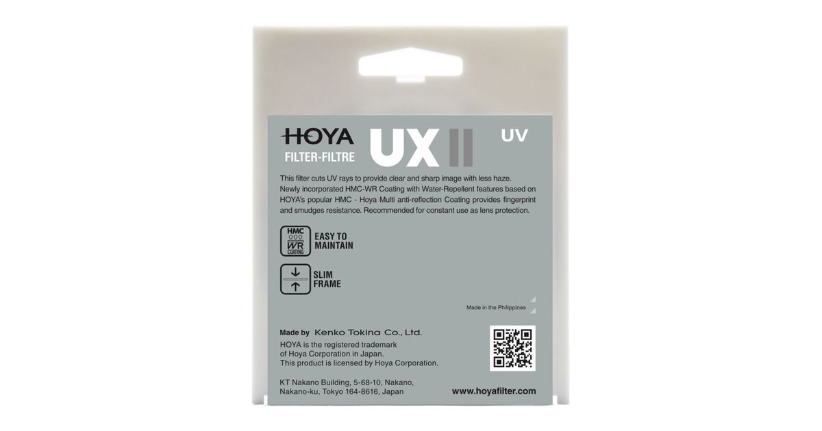 The UX II UV filter with water repellent coating is a redesign of the HMC UV(C) filter, now integrated into the new standard class UX II series along with the UX II CIR-PL filter. The UX II UV filter is a completely new concept design product targeting the entry class users and providing high quality standards with basic and contemporary functions.