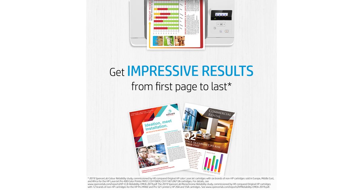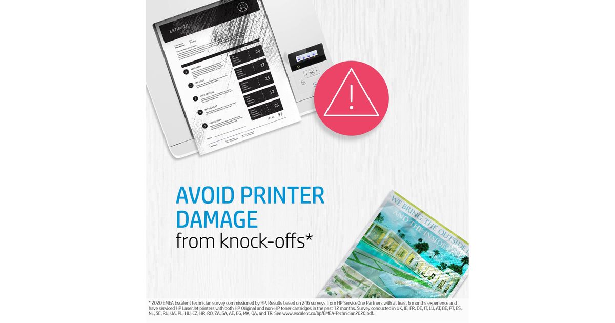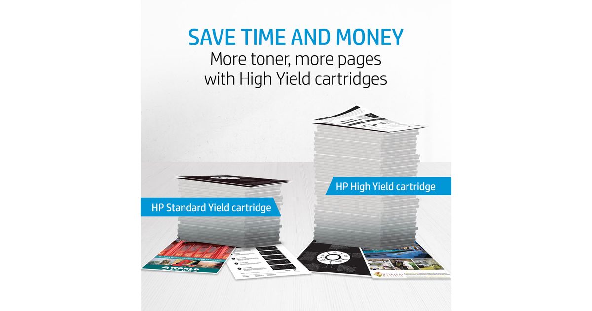 Count on Original HP High Yield Toner cartridges with JetIntelligence for more professional-quality prints, excellent performance at high speeds, and innovative anti-fraud protection – technology unique to HP.[2]