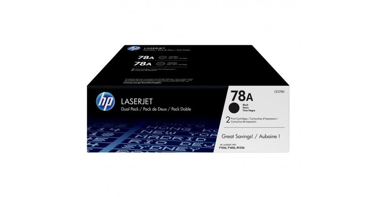 HP 78A LaserJet Toner Cartridge Dual Packs let you print more and save more. Get professional print quality for a better value than individual cartridges. Stay productive and reduce downtime by keeping an extra toner cartridge on hand.