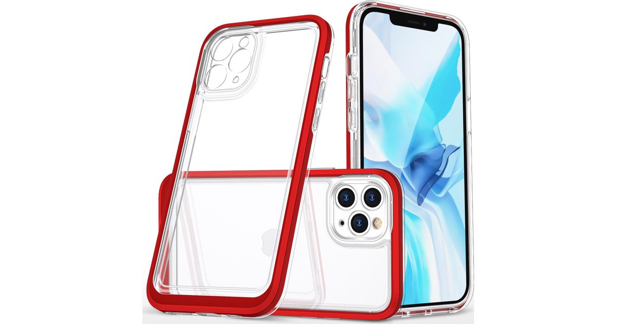 Hurtel Clear 3in1 case for iPhone 11 Pro Max gel cover with frame red