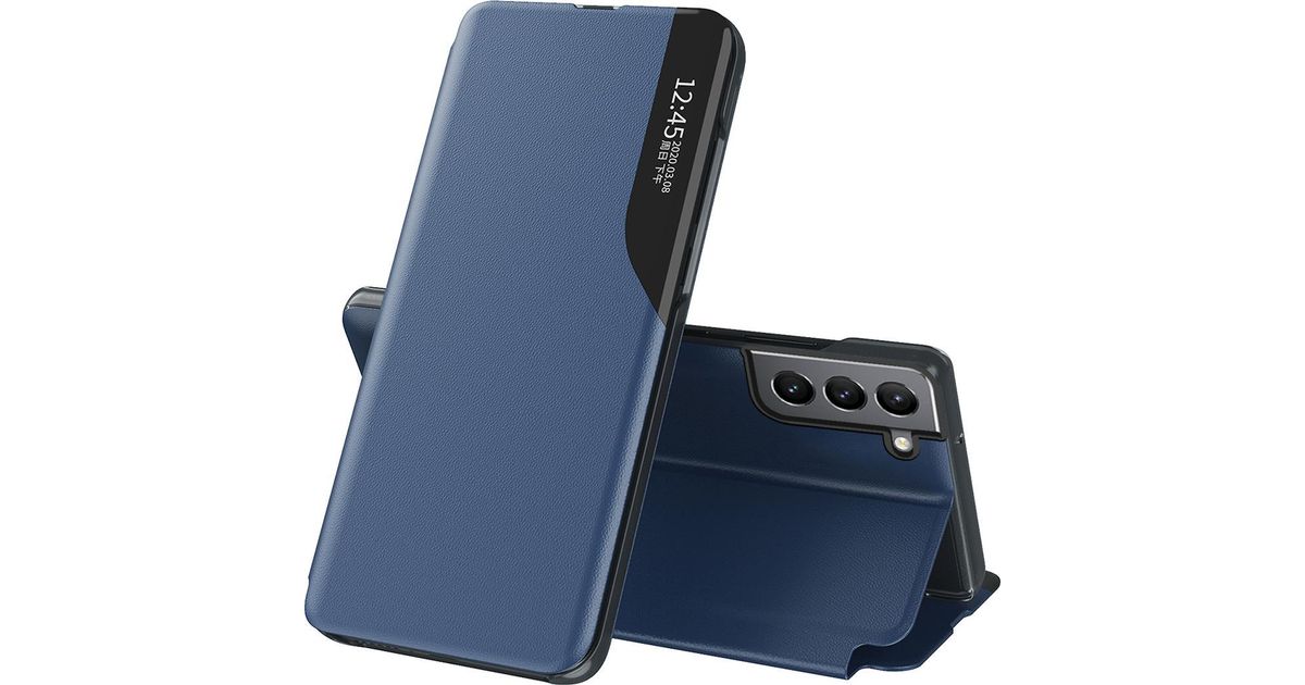 Hurtel Eco Leather View Case elegant case with flap and stand function for Samsung Galaxy S22+ (S22 Plus) blue