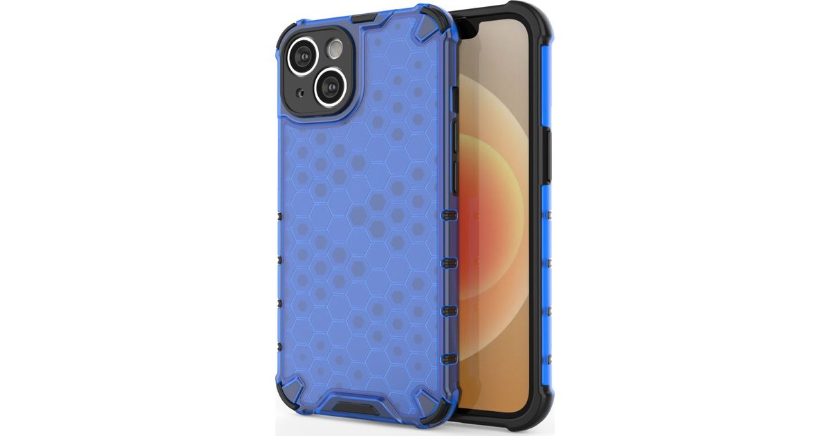 Hurtel Honeycomb iPhone 14 case, armored hybrid cover, blue