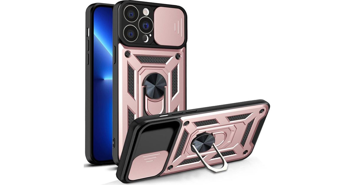 Hurtel Hybrid Armor Camshield case for iPhone 13 Pro Max armored cover with camera cover pink