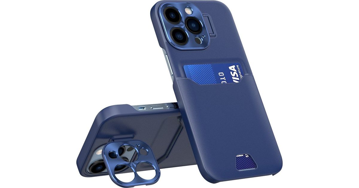 Hurtel Leather Stand Case for iPhone 14 Pro Max, card wallet cover with stand, blue