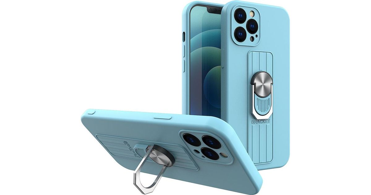Hurtel Ring Case silicone case with finger holder and stand for iPhone 13 Pro light blue