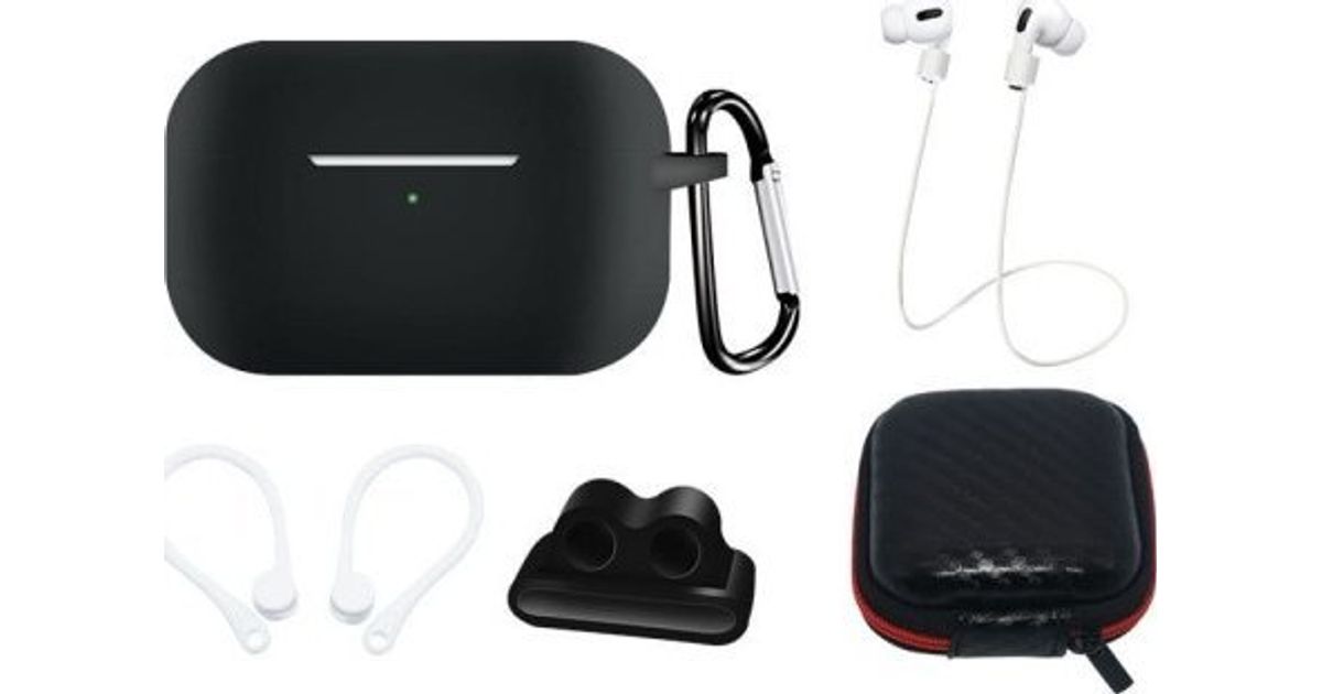Hurtel Set of AirPods Pro 2 / AirPods Pro 1 silicone case + case / ear hook / neck strap / watch strap holder / carabiner - black