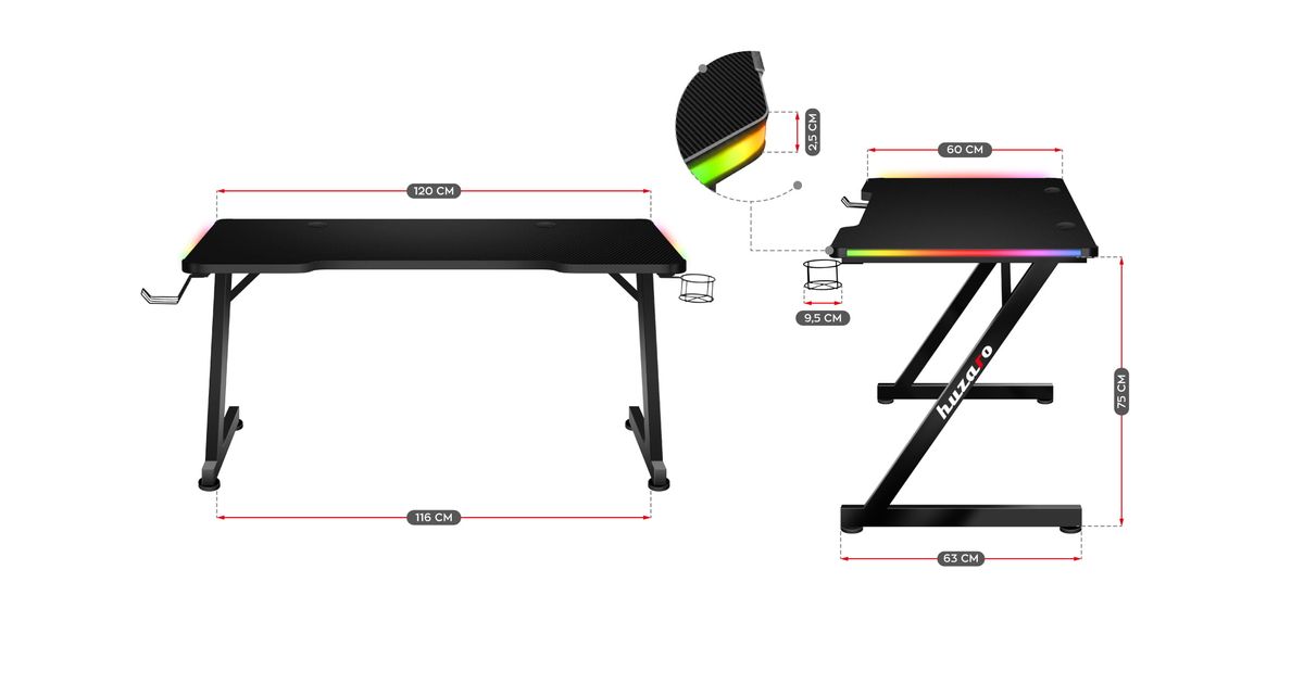 Durable, practical, functional - this is the Hero 2.5 RGB gaming desk. However, this is only half of the advantages. Gaming design, carbon fiber finish and RGB LED lighting. These features of the Hero 2.5 RGB are eye-catching and make the furniture stand out on the market. Functionality and the gaming wow effect is a recipe for success.