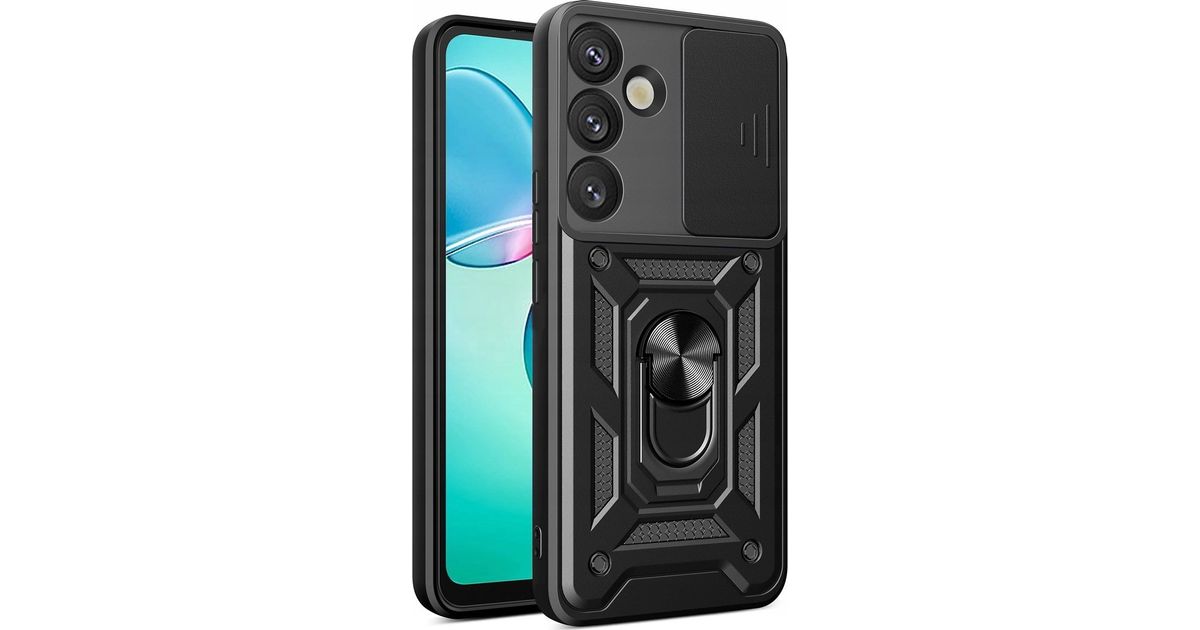 Hybrid Armor Camshield case with camera cover and metal ring for Samsung Galaxy S25+ - black