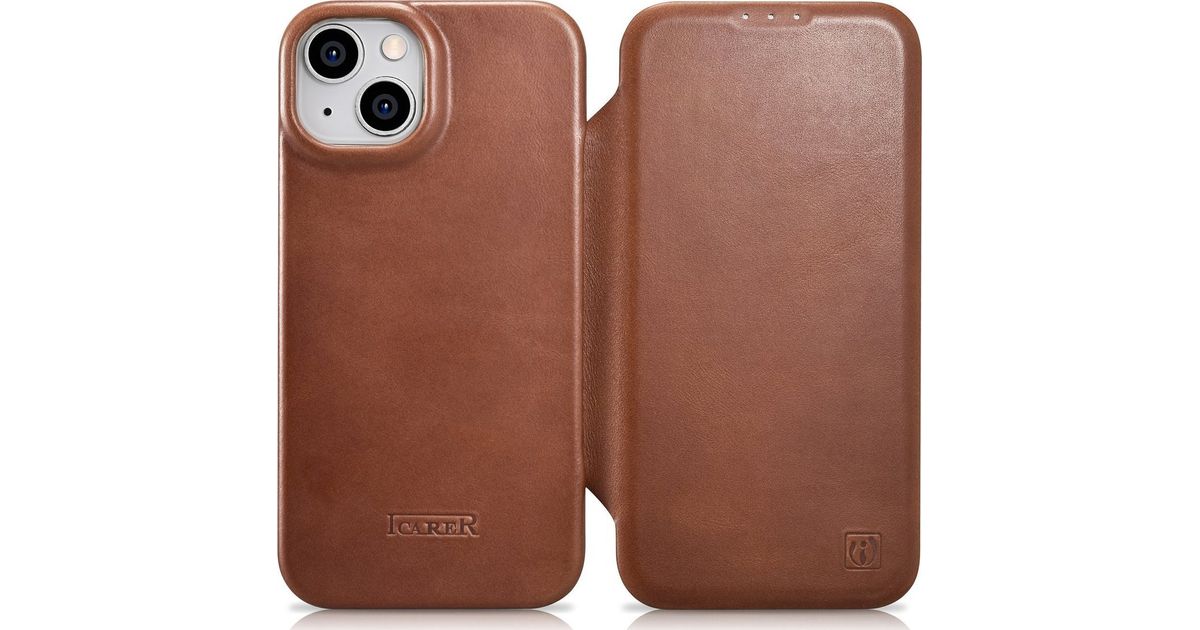iCarer iCarer CE Oil Wax Premium Leather Folio Case iPhone 14 Plus Leather Flip Case Magnetic MagSafe Brown (AKI14220707-BN)