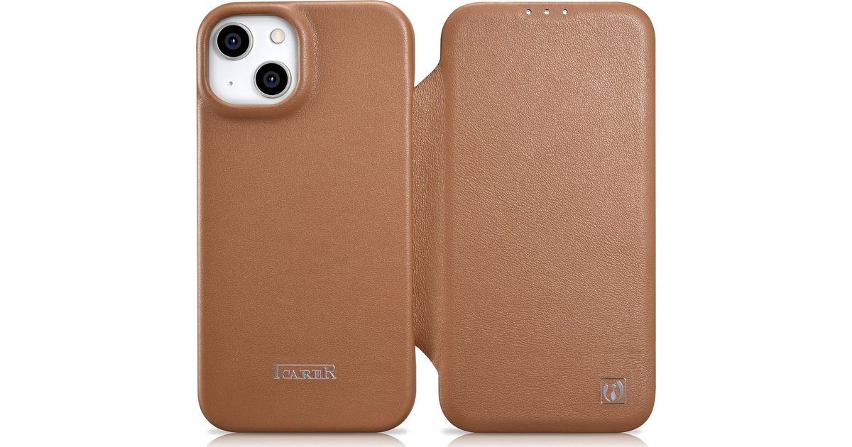iCarer iCarer CE Premium Leather Folio Case iPhone 14 Plus Leather Flip Case Magnetic MagSafe Brown (WMI14220715-BN)