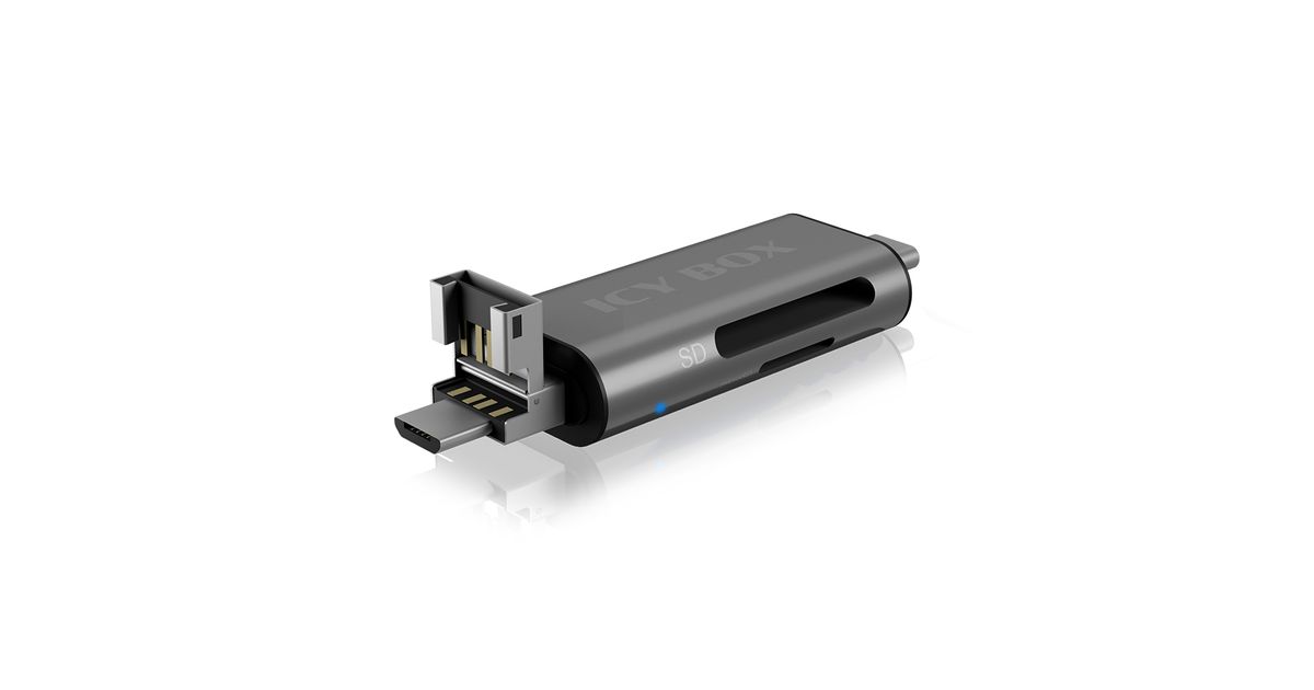 ICY BOX IB-CR201-C3, MicroSD (TransFlash), MicroSDHC, MicroSDXC, SD, SDHC, SDXC, Anthracite, 5000 Mbit/s, Aluminium, Access, Power, USB 3.2 Gen 1 (3.1 Gen 1) Type-C