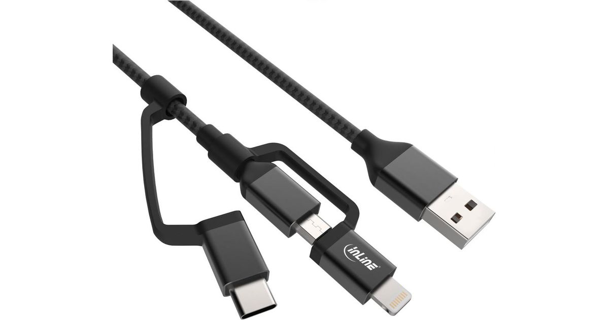 InLine 3-in-1 USB Cable, USB AM to Micro-USB/USB Type-C/Lightning MFi-Certified - USB cables and adapters - Cables, KVM switches & adapters - Audio-video - MT Shop