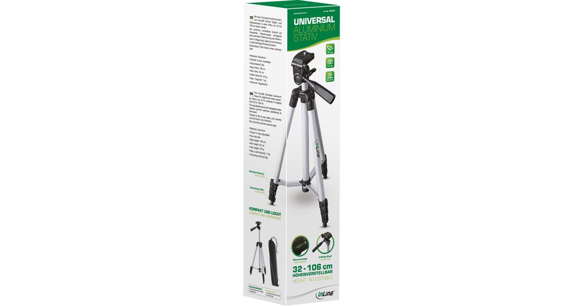 InLine Aluminium Tripod 3 Legs up to 1.06m, Black, Silver, 106 cm, 500 g