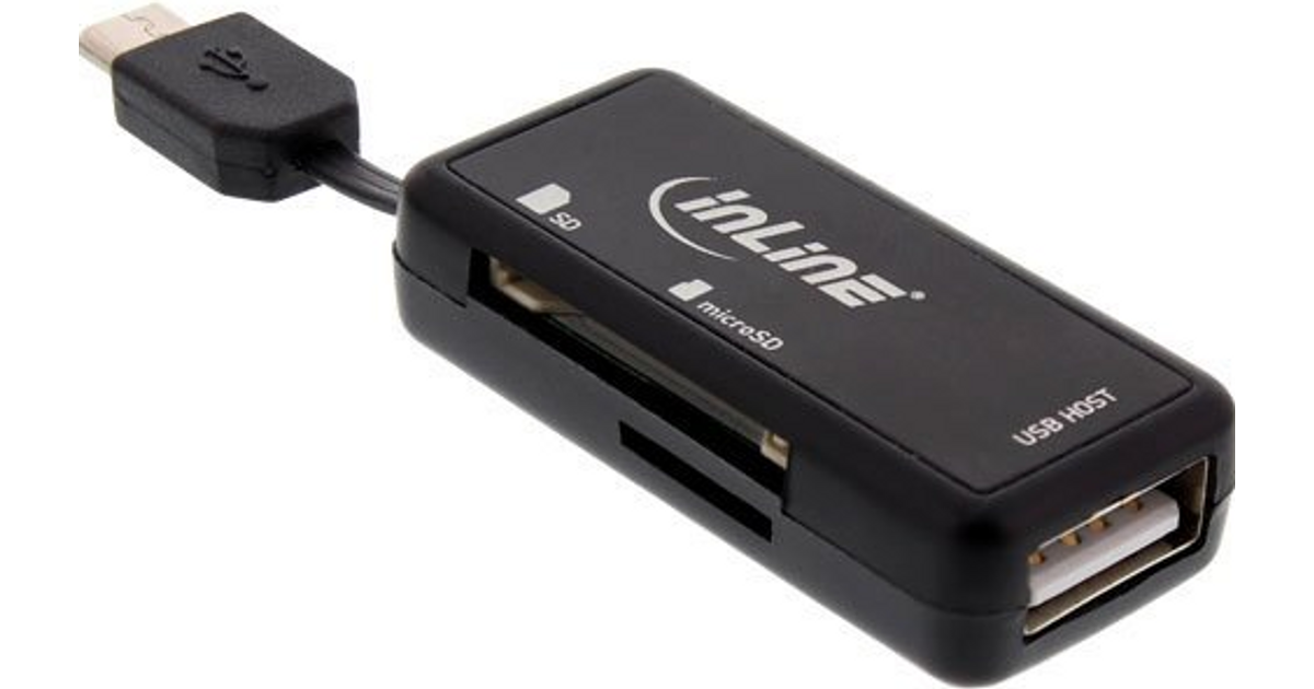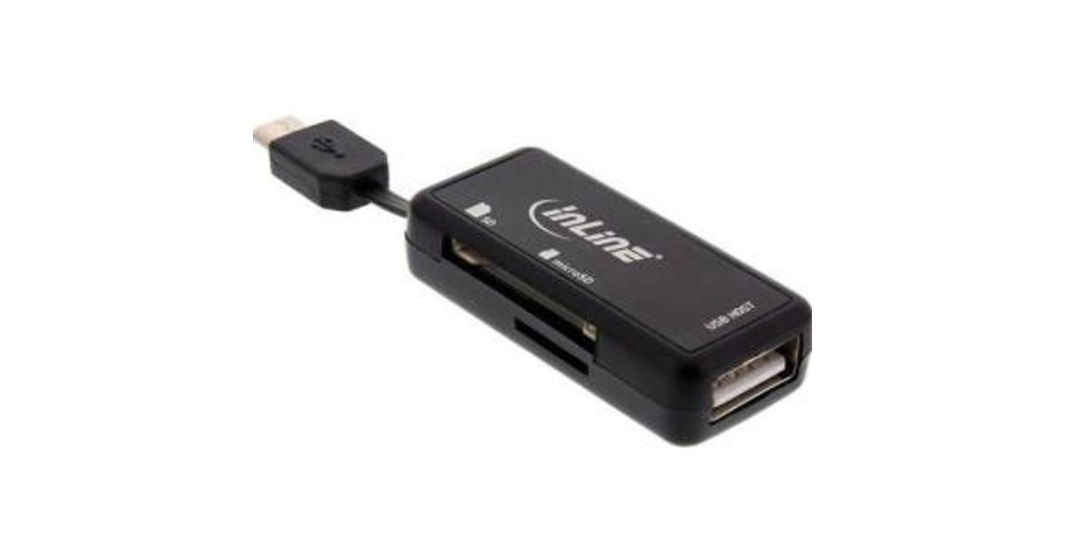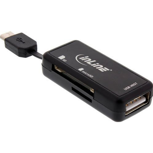 InLine OTG Card Reader Dual Flex for SD, micro SD w/ USB Port and 2 Card Slots, MicroSD (TransFlash), MicroSDHC, MicroSDXC, SD, SDHC, SDXC, 2000 GB, Micro-USB
