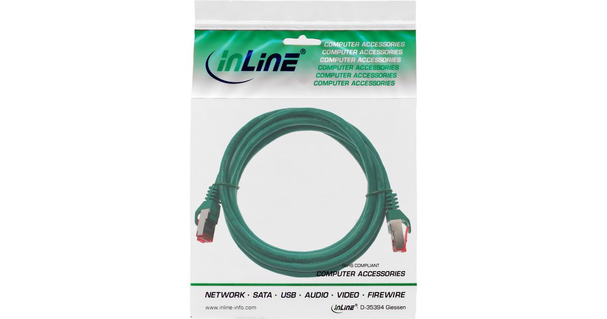 InLine Patch Cable S/FTP PiMF Cat.6 250MHz PVC copper green 1m