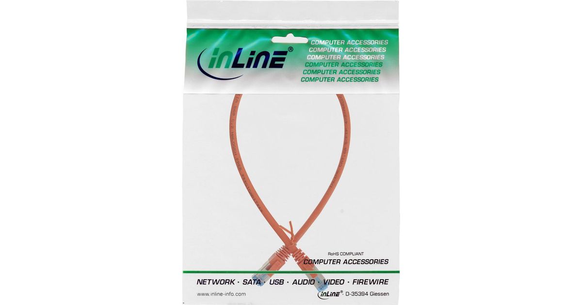 InLine Patch Cable S/FTP PiMF Cat.6A halogen free 500MHz orange 0.25m