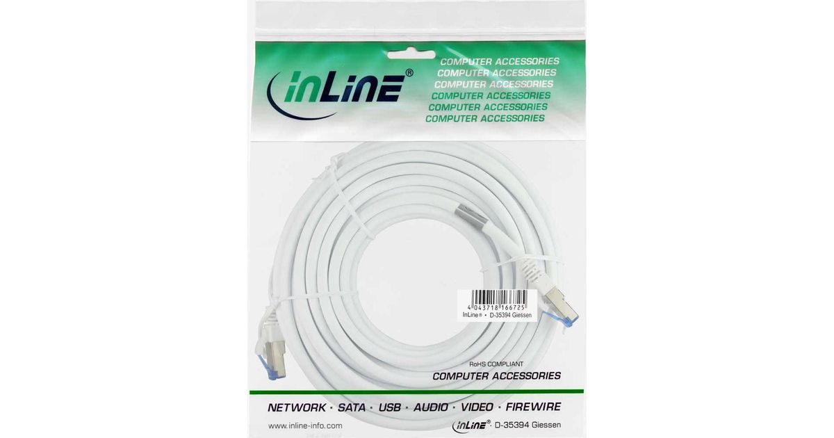 InLine Patch Cable S/FTP PiMF Cat.6A halogen free 500MHz white 15m