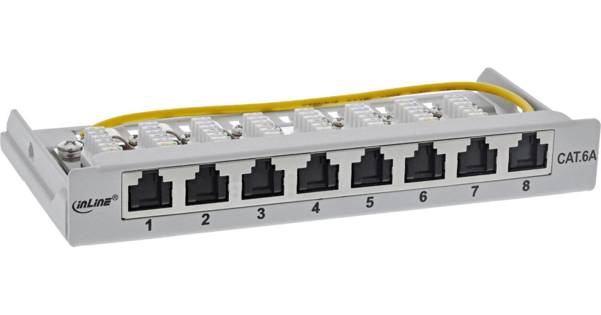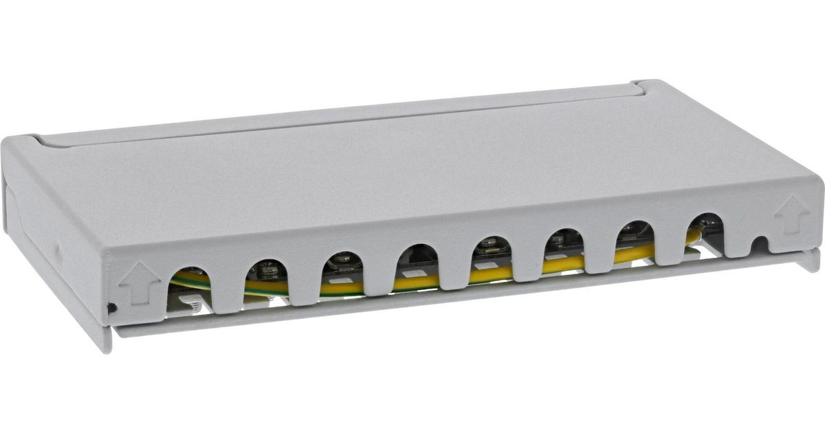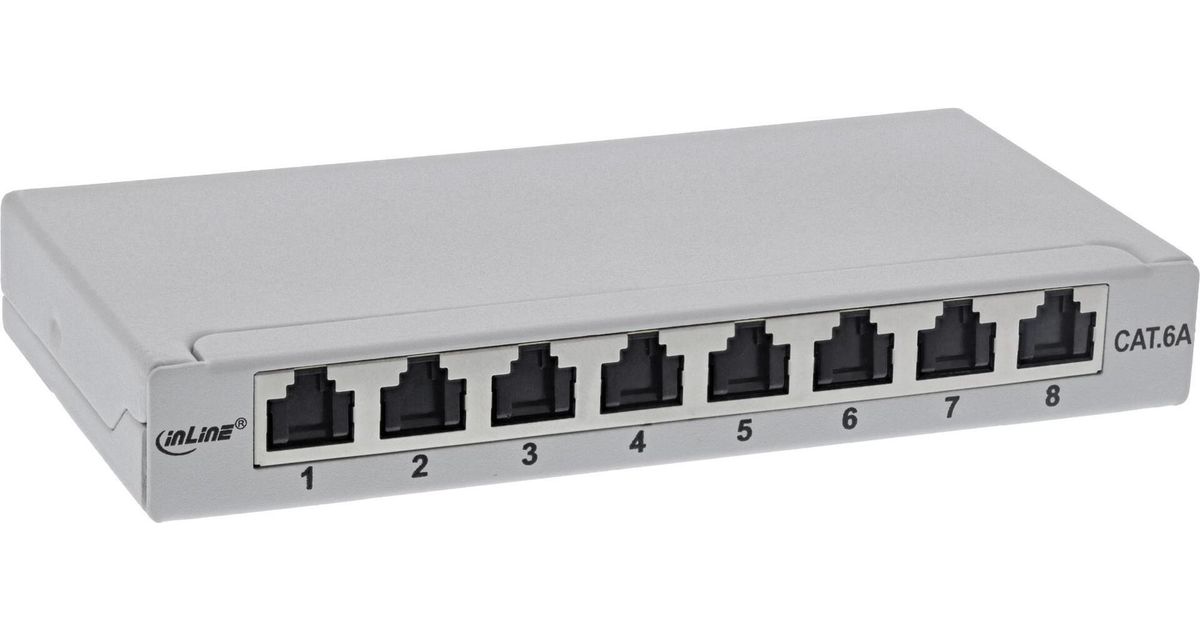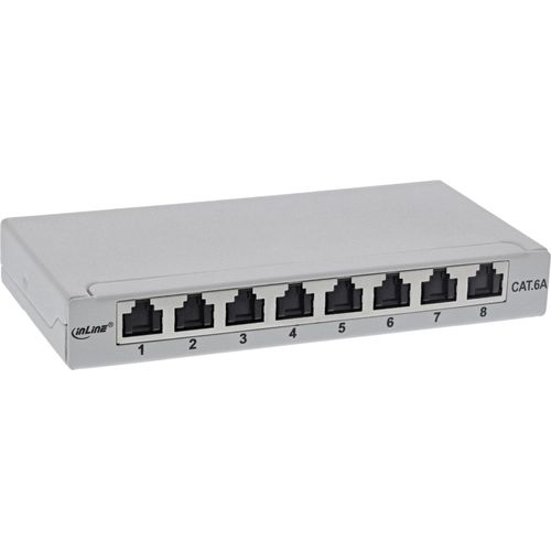 InLine® Patchfeld Cat.6A 0,5HE 8-fach, für Tisch/Wand/Hutschiene, mit Staubschutz, grau (76818A)